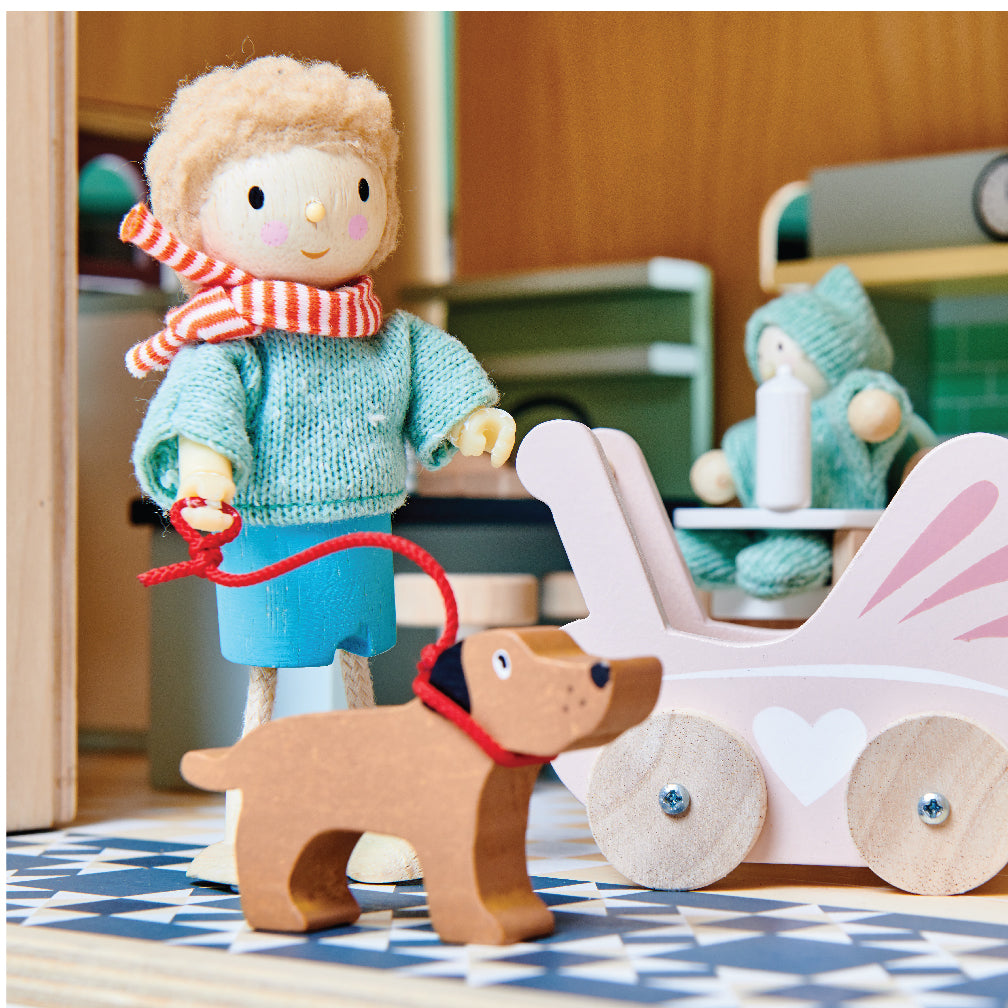 Meet Mr. Goodwood out walking with his trusty pet dog. Say hello to Mrs. Goodwood who is busy caring for her brand new baby. They have 2 children, Amy and Edward who love playing with their pets and their skateboard! All made from solid wood with beautiful quality knitted and jersey fabrics, they have bendy poseable arms and legs to enable great fun and imaginative play. TL8143: 3.54 x 1.57 x 5.31? / 9 x 4 x 13.5 cm
